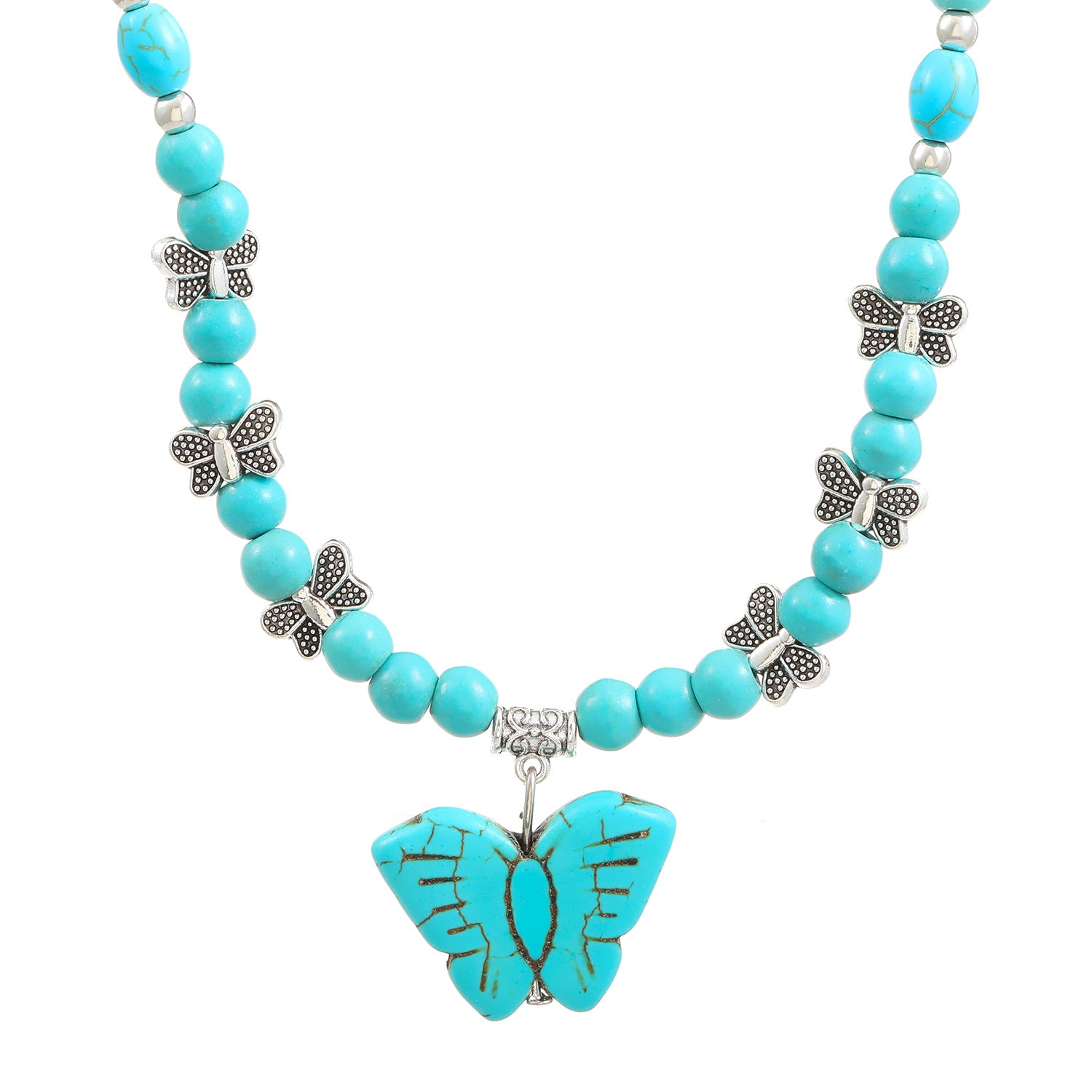 Effortless Charm – Turquoise Butterfly Beaded Necklace